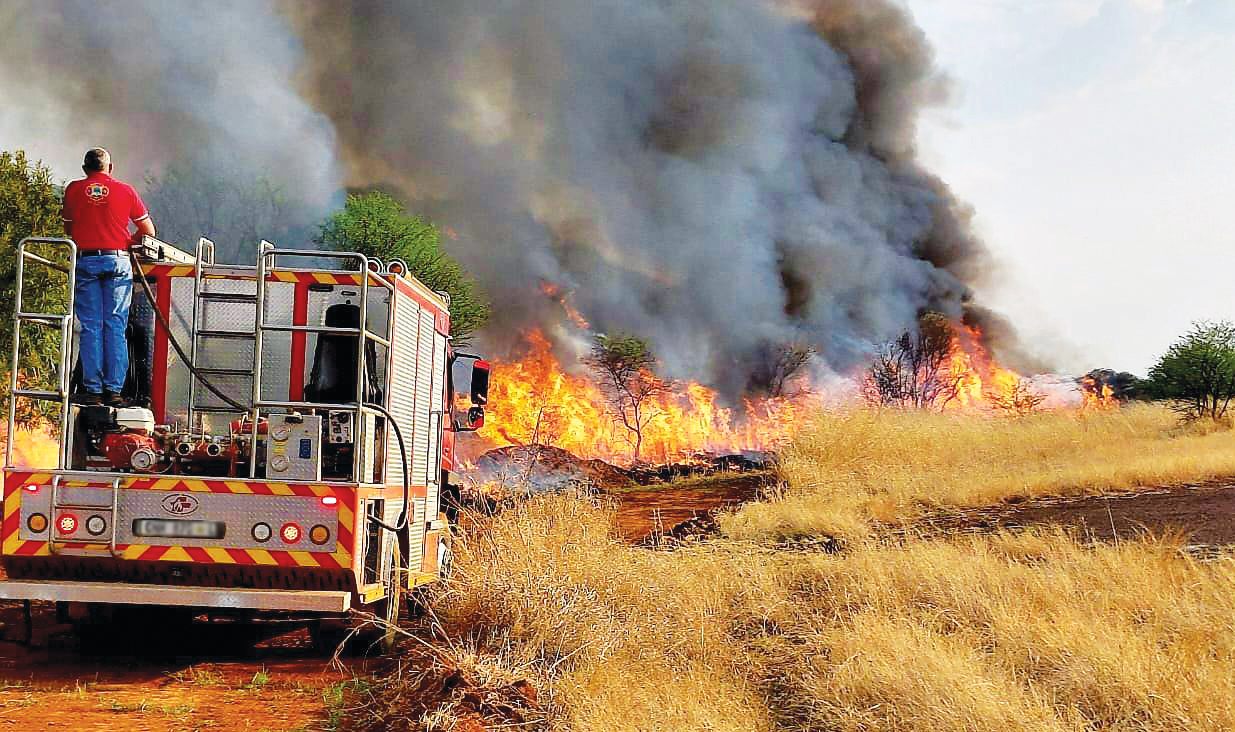 Main photo: Veld fires sweep across the bushveld — relentless, but never stronger than our heroes in red.